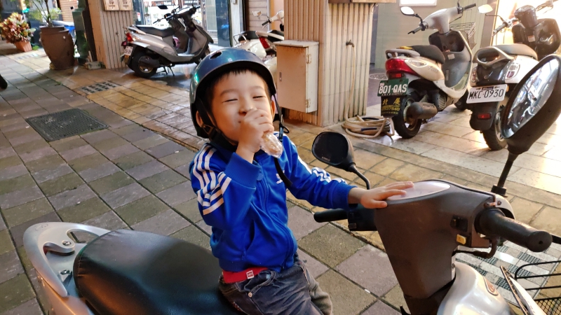 每天下午載哥哥放學回家,都會順便去附近麵包店買民宿所需的麵包,兒子不是每天都會要求要買個點心吃的小孩