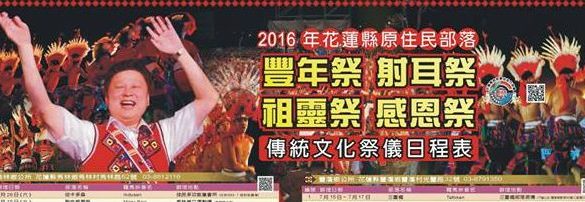 2016花蓮豐年祭要來囉~每年夏季花蓮各市鄉鎮都會舉辦部落豐年祭,這次花蓮縣觀光局把全花蓮縣各鄉鎮豐年祭、射耳祭、祖靈祭以及感恩祭做成圖檔,但因圖檔不易讀取,excel格式又與部份瀏覽器不符,最後我還是自己跑了一趟花蓮縣觀光局拿海報
