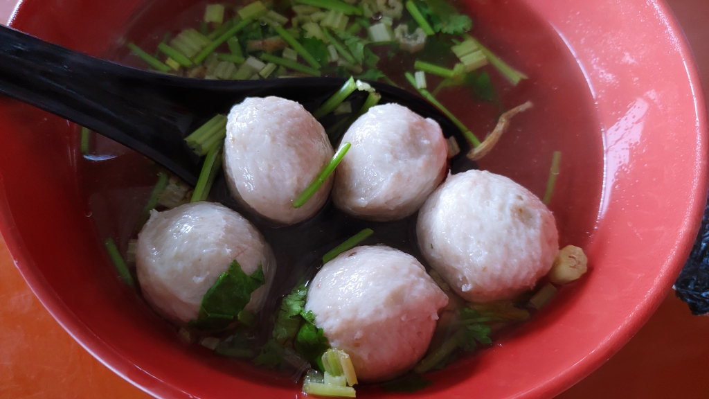 ↑魚丸湯大推,魚丸紮實有彈性,咬下去立即感受到鬼頭刀的魚鮮味,這是漁港才有的地主優勢啊 !