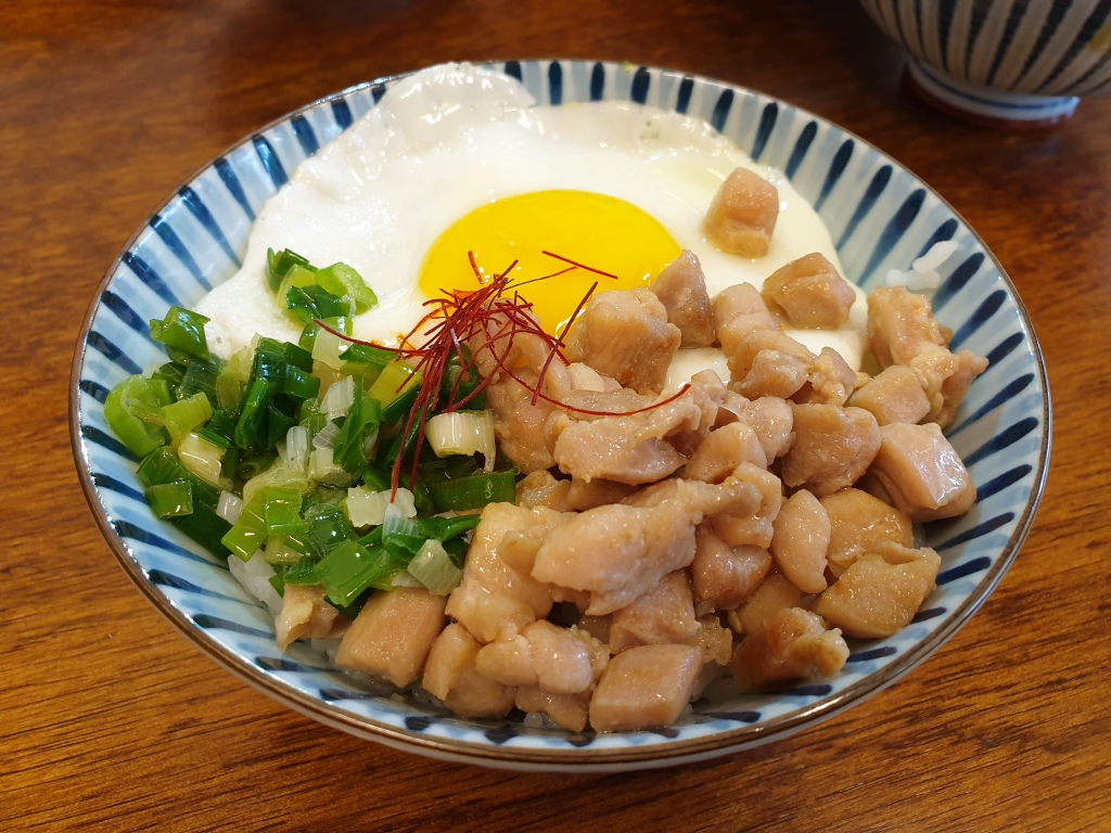 大推蔥油雞飯,跳脫傳統港式燒臘的作法,雞腿肉去骨切丁醃漬,白飯淋上蔥油醬跟新味醬油,舖滿過了油的蔥花,配上一顆銷魂蛋,讓人吃了意猶未盡想再多吃幾碗